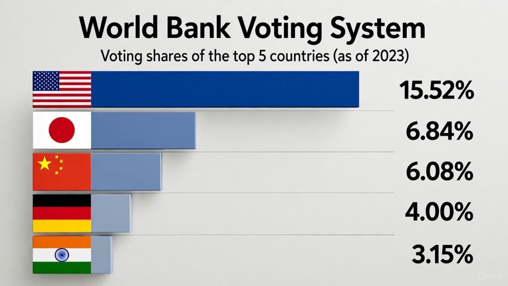 नोट: किसी भी बड़े निर्णय के लिए 85% वोट आवश्यक, इसलिए अमेरिका का प्रभाव अधिक है।